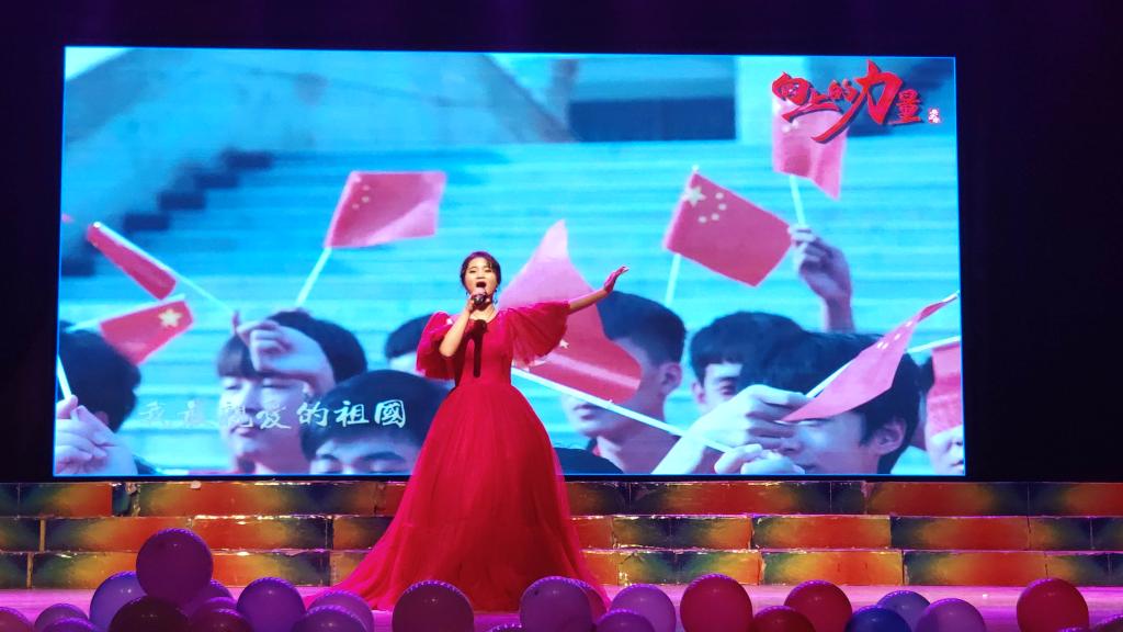 晚会在热情洋溢的独唱《我和我的祖国》中拉开帷幕。兰涛和赵冬梅联袂带来的诗歌朗诵《我的祖国》瞬间点燃了礼堂内的气氛,观众们随着两位院长高亢的朗诵声而心潮澎湃,礼堂内掌声、欢呼声不绝于耳。