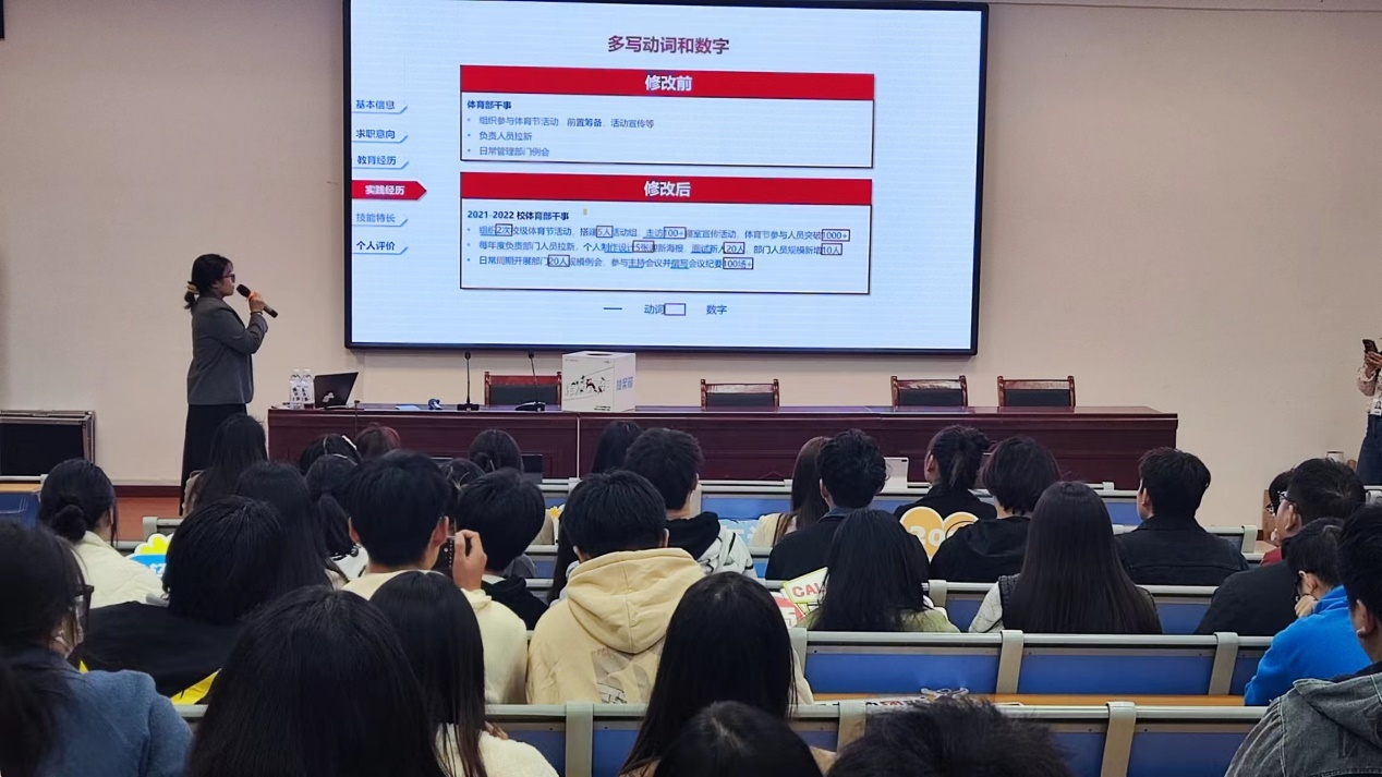 最后,宣讲会上还进行了“有为青年”公开课互动、简历制作技巧讲解、投递简历等环节。