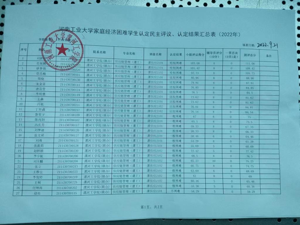 2022年tyc522cc太阳成集团资助工作贫困认定结果公示