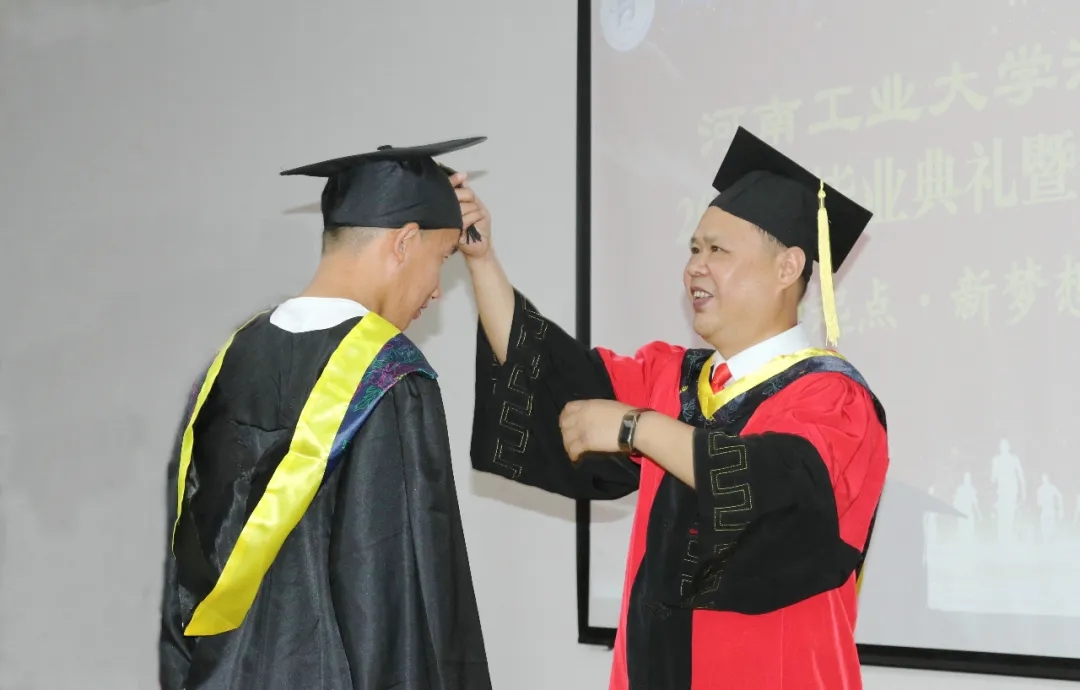 河南工业大学副校长陈复生教授为毕业生拨穗