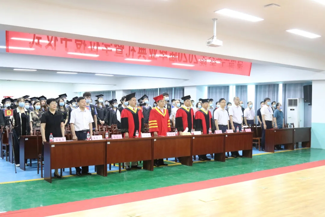 毕业典礼暨学位授予仪式在庄严的国歌声中拉开帷幕。现场师生全体起立,齐唱国歌,唱响了毕业生们永远与祖国同行的赤子之情。