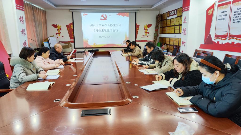 主题党日活动分为三个阶段进行。第一阶段,支部党员集中学习了习近平总书记在2024年春节团拜会、二十届中央纪委三次全会以及一月三十一日中共中央政治局会议上的重要讲话精神,学习了《党史学习教育工作条例》及2024年漯河市政府工作报告等。第二阶段,纪检委员陈水生通报了3起违反中央八项规定精神的典型案例,提醒广大党员干部要从中汲取深刻教训,时刻紧绷纪律规矩这根弦,举一反三,引以为戒。第三阶段,支部书记王方通报讲评“双承诺”“双报到”“双结对”活动开展情况,并就党支部在新的一年中如何高质量开工作展提出谋划。