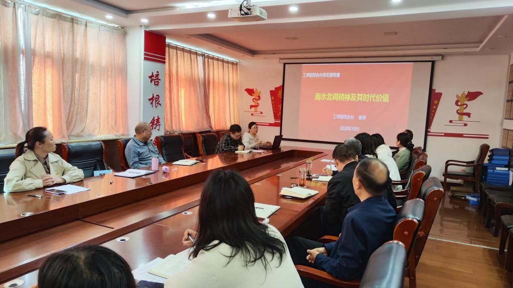 最后,由工学院综合办负责人娄琳同志讲授了题为《南水北调精神及其时代价值》的党课。她系统地讲解了南水北调工程的规划建设和移民大搬迁过程,剖析了南水北调的精神内涵和现实意义。全体党员被库区移民和工程建设者顾全大局的爱国主义精神、舍家为国的牺牲奉献精神、与时俱进的开拓创新精神和精益求精的守职敬业精神深深震撼,下一步将以此为契机,进一步增强政治意识、大局意识、核心意识、看齐意识,以南水北调精神砥砺初心,为学校发展贡献力量。