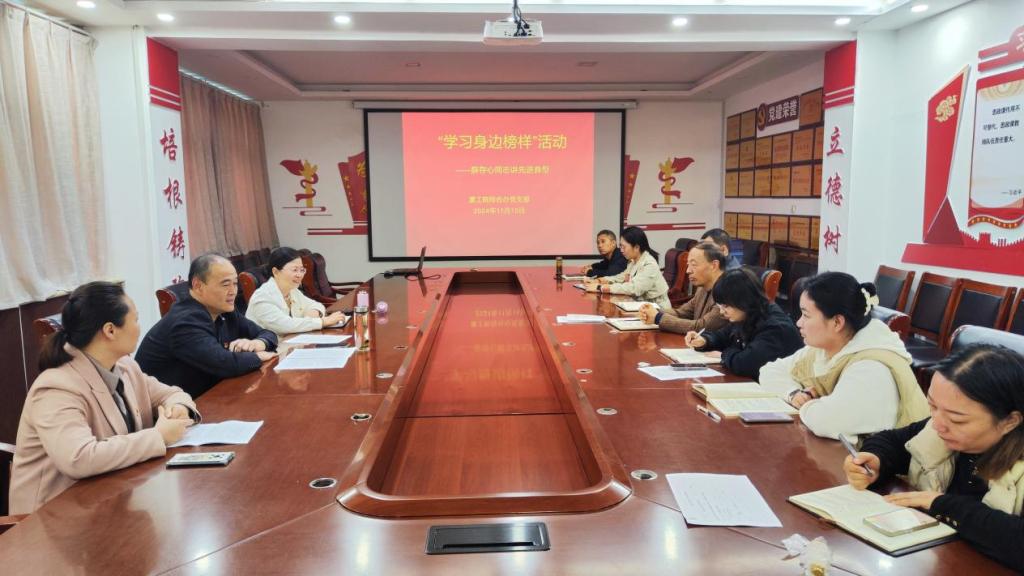 在“学习身边榜样”活动中,薛存心为支部党员介绍了学校派驻舞阳县莲花镇大赵村第一书记朱献周的先进事迹。朱献周在驻村期间,工作严谨细致,待人诚恳,为大赵村群众办了很多实事好事,改善村容村貌,整理汇编了20多万字的驻村大事记,成为舞阳县驻村工作的样板和标杆。薛存心指出,要学习朱献周同志不畏艰苦、勇于担当、甘于奉献、兢兢业业的精神,汲取榜样的力量,为学院的发展注入不竭动力。