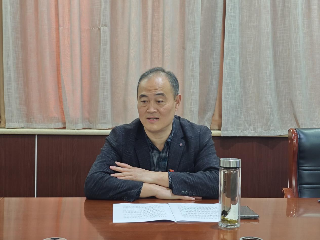工学院综合办负责人娄琳介绍了何琦、陈明杰的先进事迹。何琦老师热心公益,与妻子筹建了泰山路公益爱心粥项目,七年来为环卫工人、孤寡老人提供免费早餐服务,获评第九届漯河市道德模范。陈明杰老师成立的现代剪纸工作室坚守初心,把民间非遗剪纸艺术与现代生活深度融合,推动中华优秀传统文化创新发展,被授予“守正创新十强剪纸工作室”。娄琳表示,要向身边的榜样学习,牢记初心使命,砥砺奋进前行。