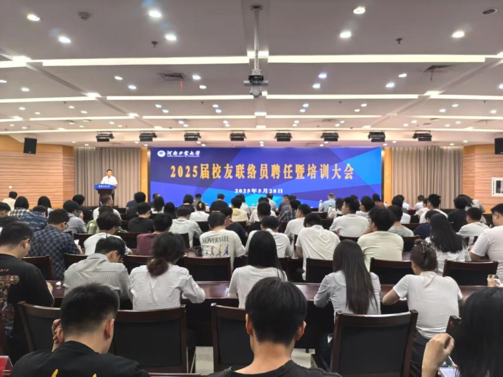校友与基金工作办公室主任马武刚宣读了《河南工业大学校友会关于聘任2025届校友联络员的决定》;党委办公室主任、校长办公室主任、河南工业大学校友会会长刘红军为新聘校友联络员做专题培训,他强调校友联络员要从“维系校友与母校感情的情感纽带、健全校友工作体系的关键角色、推动校友与母校共同发展的中间桥梁”等三个方面强化身份意识,希望广大校友联络员能够持续关心学校的建设和发展,以高度的责任心和奉献精神为校友工作做出积极的贡献。