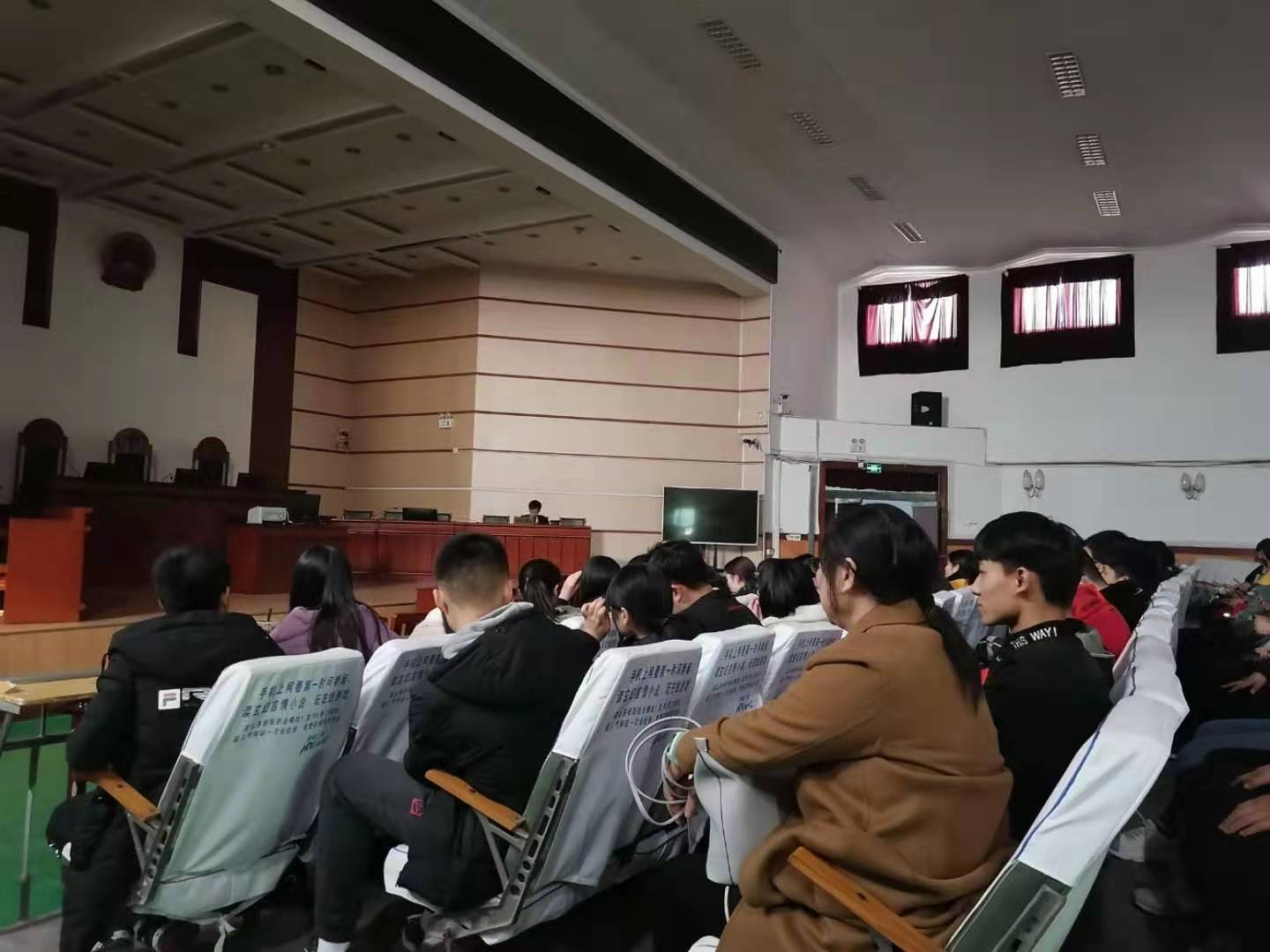 2019年12月13日,思政部思想道德修养与法律基础教研室组织tyc522cc太阳成集团170余名学生到漯河市源汇区人民法院旁听了庭审,近距离感受庭审过程,学习、了解庭审程序,“零距离”接受法治教育。
