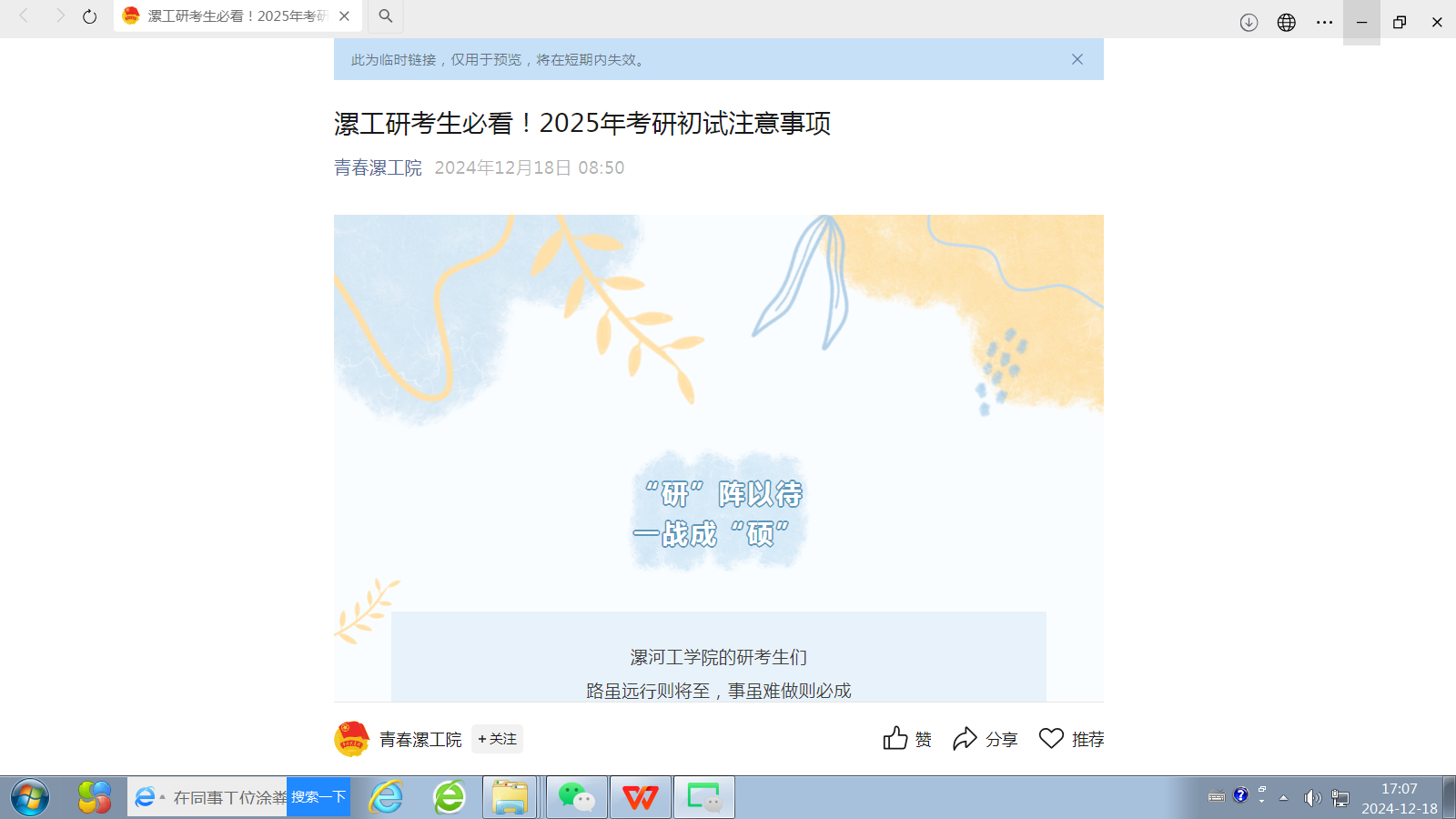 太阳成集团考研诚信教育推文截屏