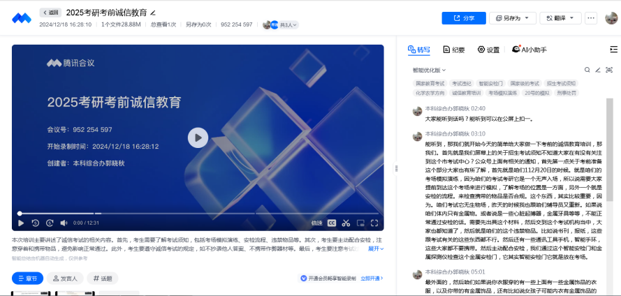 1218日下午,太阳成集团对参加考研的本科学生进行了诚信考试教育。诚信考试教育的方式有两种,一是线上课堂教育,二是太阳成集团诚信教育推文。郭晓秋老师主持课堂讲学,李林怡老师负责诚信考试教育推文撰写与编辑。